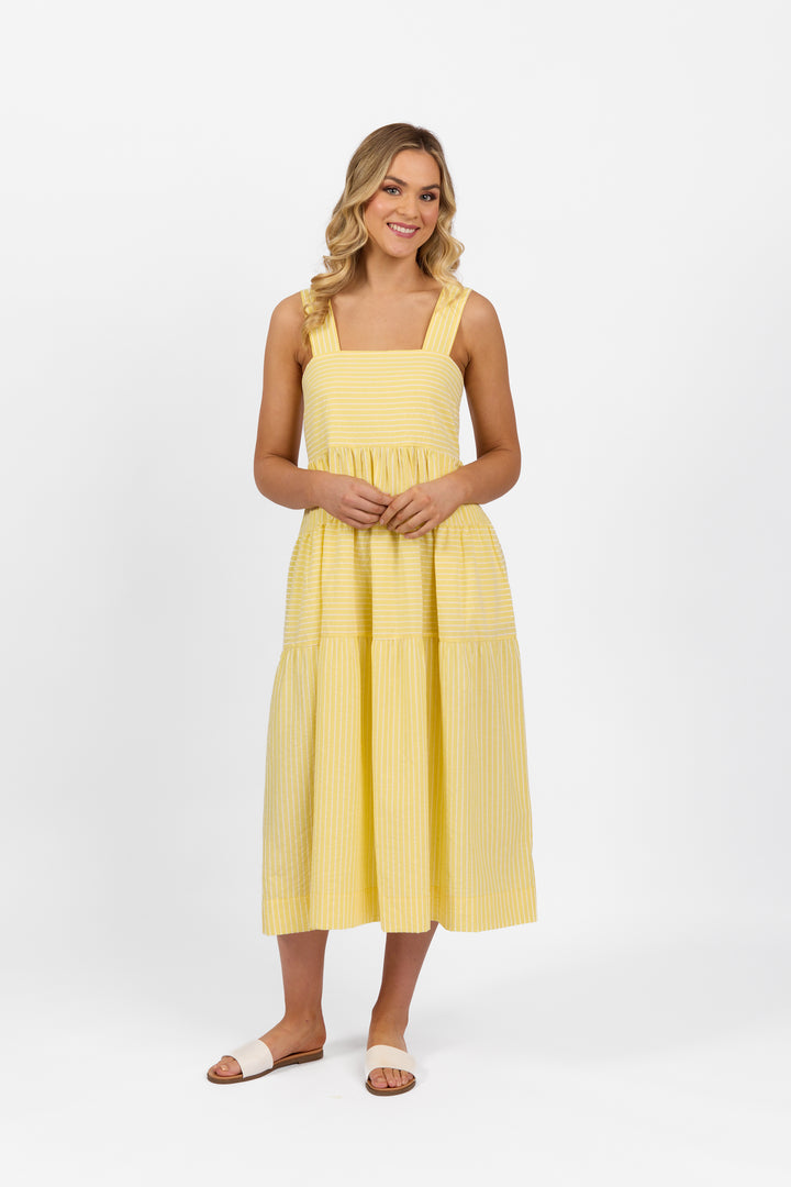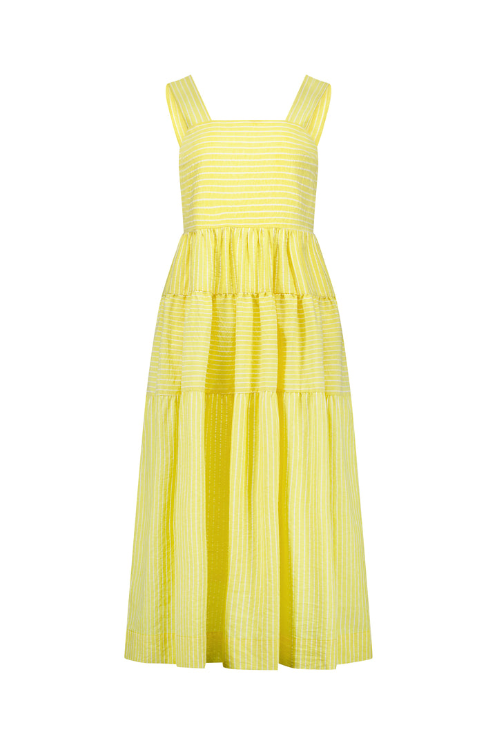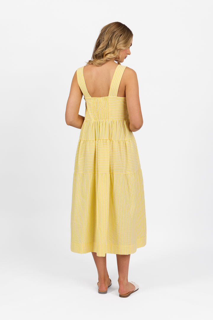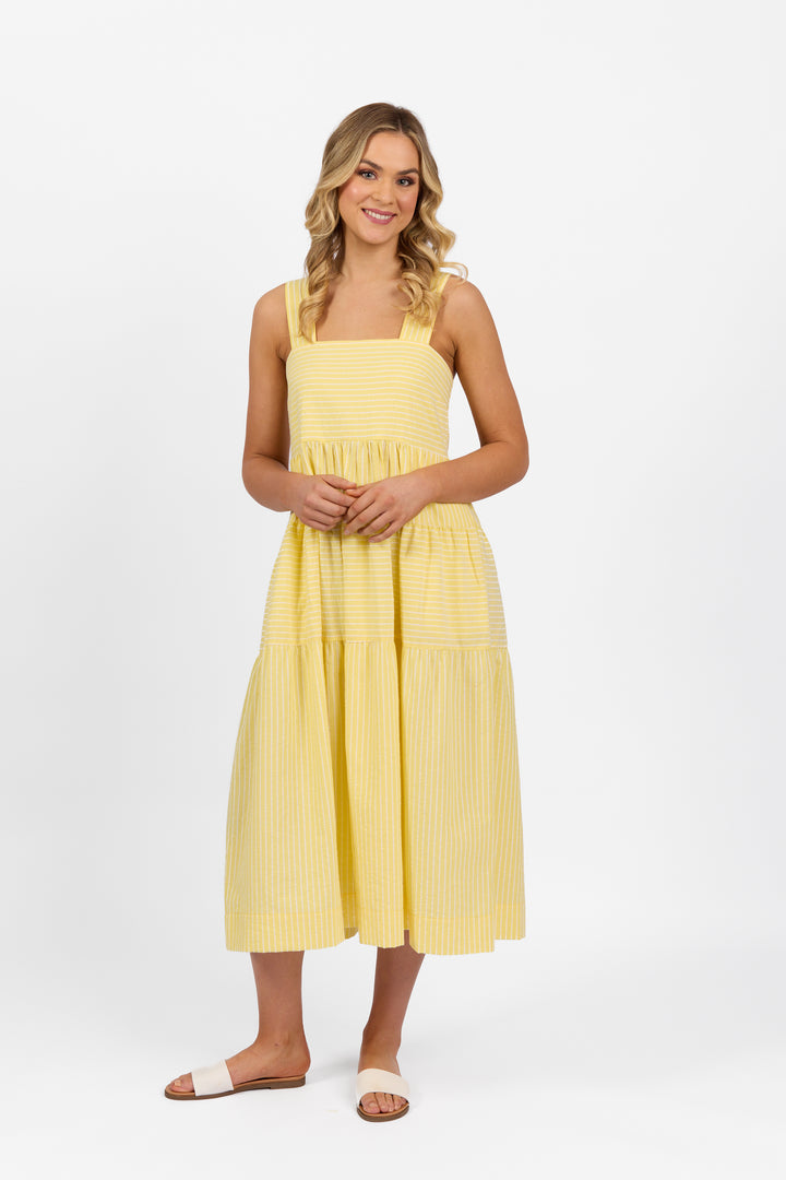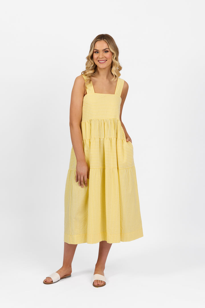 6099 Tiered Dress - Lemon Stripe