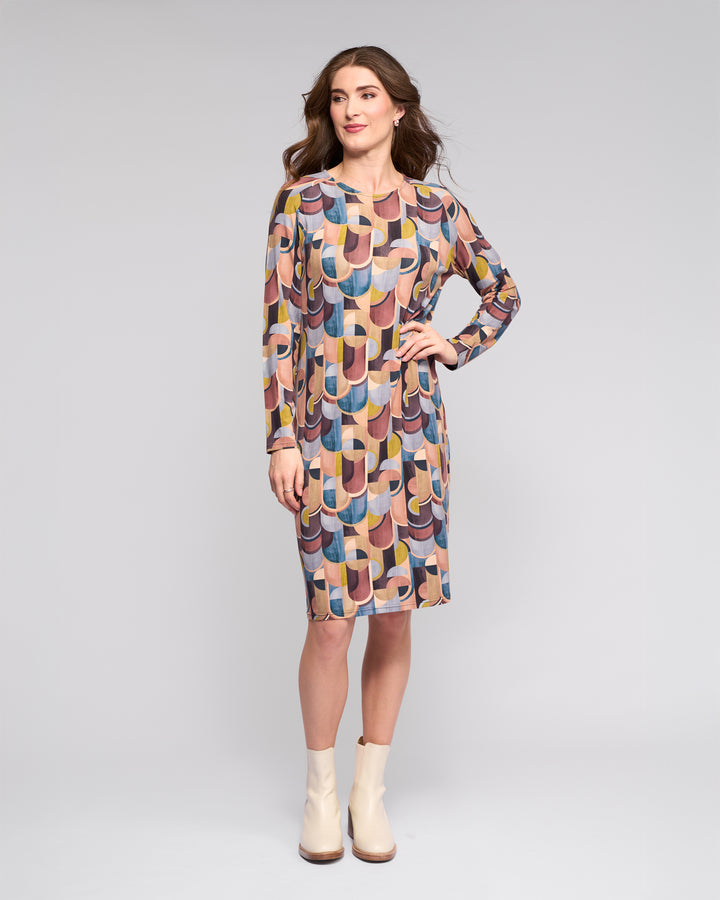 Simple midi-length dress in our Revolve print, made from a soft, lightweight rayon jersey with stretch. Designed with long sleeves and a round neckline, this easy style offers a comfortable, fluid fit for everyday wear.